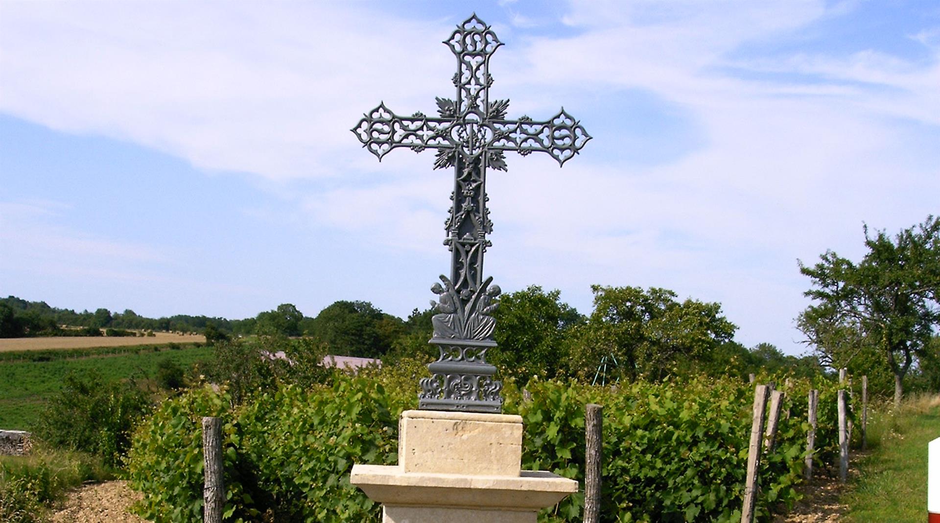 Vous rencontrerez sur nos chemins, aux carrefours des rues, de nombreuses croix monumentales. Celles-ci sont en pierre, sculptées et représentent la scène de crucifixion du Christ. Ces croix et calvaires sont des constructions érigées, au Moyen Âge, par l’Église qui souhaitait protéger les voyageurs ou les gens poursuivis par un ennemi. Toute personne qui trouvait refuge auprès de ce symbole religieux catholique était tout aussi bien protégée que si elle trouvait asile dans une église.